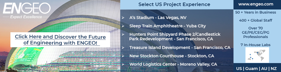 ENGEO’s roots can be traced back to large, master-planned communities in the San Francisco Bay Area. However, we have noticed that development has been shifting to infill type projects within urban areas. Typical development types in these areas include stadiums, multifamily, mixed-use, and mid- and high-rise structures. Because of space constraints, many of these projects include subterranean parking. Developing in urban areas can be challenging due to soil and/or groundwater contamination, old man-made fills that are unsuitable to support new structures, and stability of temporary excavations during basement construction. We have successfully partnered with our clients, their contractors, and regulatory agencies on infill projects throughout the San Francisco Bay Area, Los Angeles, Sacramento, and New Zealand. Pertinent examples can be found on our website: Projects | ENGEO. Recently, we have partnered with the Oakland Athletics to provide geotechnical engineering design services for the planned stadium at the former Tropicana site in Las Vegas, Nevada.