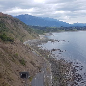 More than 20 faults are inferred to have moved in the M7.8 November 2016 Kaikōura Earthquake, which resulted in extensive damage to the coastal slopes and caused uplift at several locations. The transport corridor is located on a narrow coastal strip of land between steep mountainous slopes and the Pacific Ocean and was severely affected by landsliding to the north and south of Kaikōura. Over 80 landslides occurred along the road and rail transport corridor between Clarence and Oaro.